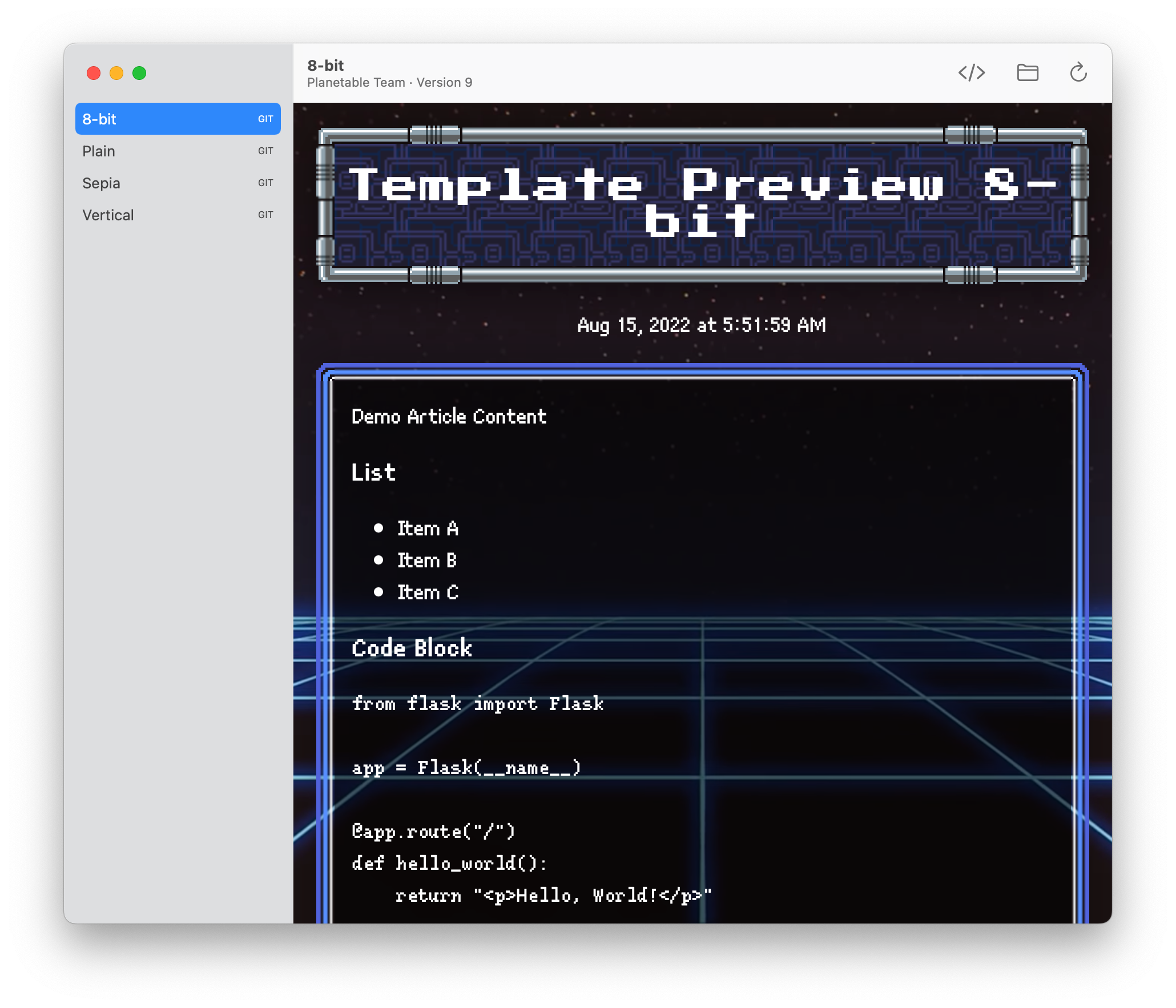 Feature parity of templates is an important goal of Planet. All of the built-in templates are open source, just like the Planet App, so if you find any issues with the templates, you can send us feedback via GitHub Issues or even PR: